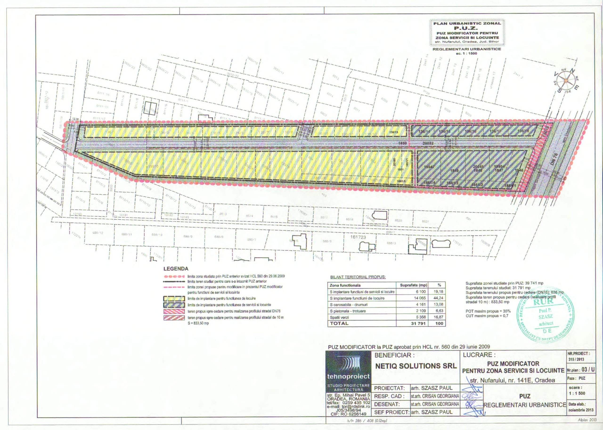 Prin planul urbanistic zonal modificator initiat de SC Netiq Solutions SRL, reprezentat de dl. Popa Gheorghe-Lucian, se doreste delimitarea si reglementarea urbanistica a unei zone destinate locuintelor, serviciilor si comertului, pe amplasamentul constituit din parcelele identificate cu nr. cad. 19947, 1847, 1848, 1849, 136/14, 136/15, 136/16, 136/17, 136/18-Oradea.
